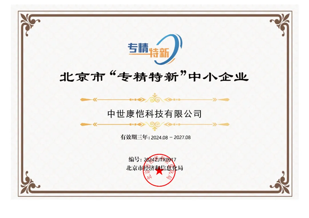 中世康愷榮獲北京市“專精特新”中小企業稱號,開啟發展新篇章!